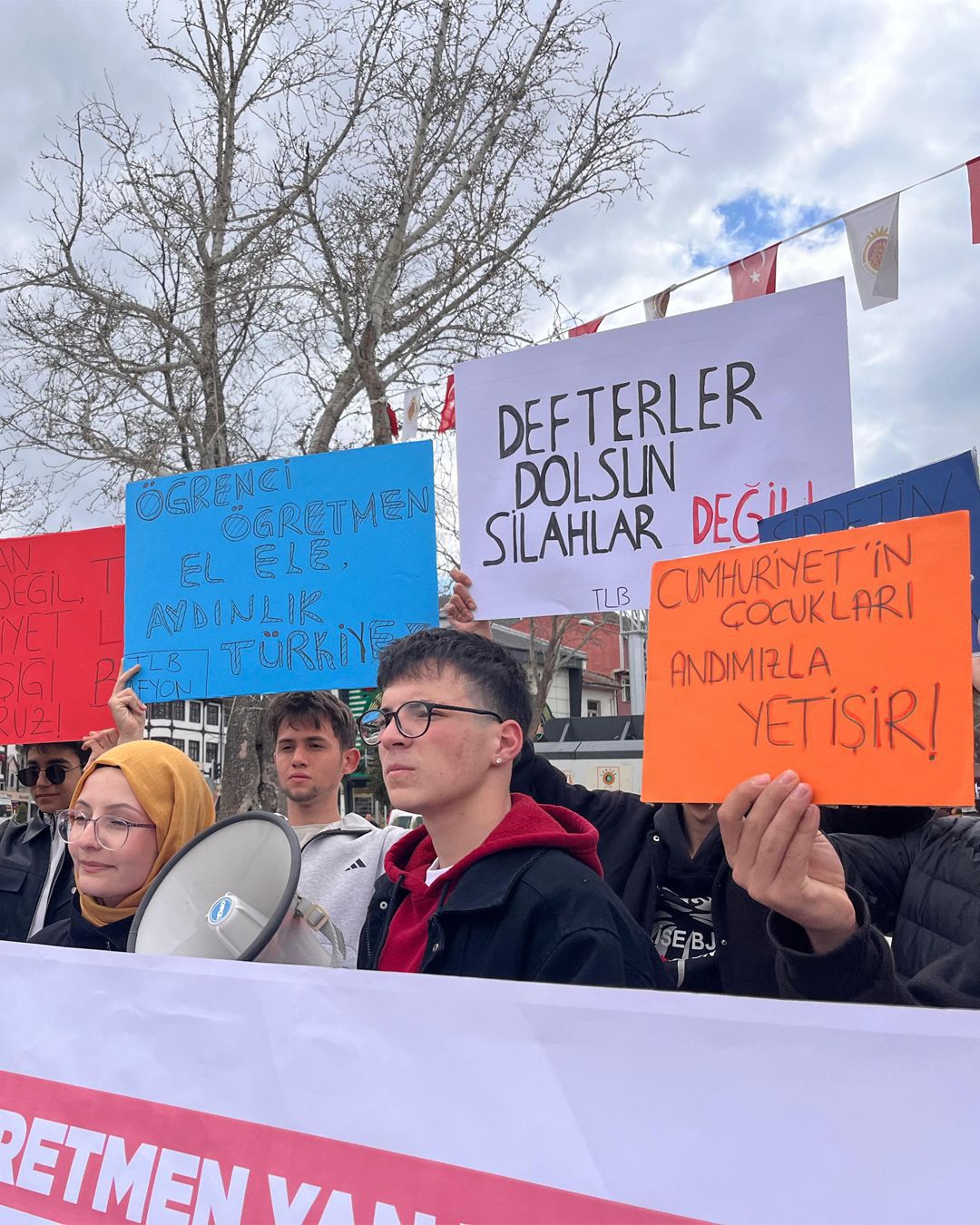 Biz korurken kahramanlaşan değil, bize öğrettikleriyle gözümüzde kahraman olan, hayatta olan öğretmenlere ihtiyacımız var. İş bırakan öğretmenlerimizin yanındayız; onların talebi bizim talebimizdir. Öğretmen ve öğrenci el ele, yan yana bu sistemi birlikte düzelteceğiz.