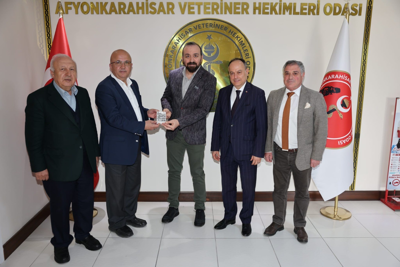 Görüşme sonunda Afyon Eğitim Vakfı Yönetim Kurulu Başkanı Hüsnü Serteser tarafından Oda Başkanı Veteriner Hekim Doğan Kaya’ya vakfın plaketi takdim edildi. Program, günün anısına çekilen hatıra fotoğrafı ile sona erdi.