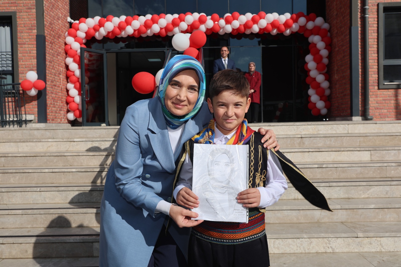 Açılış programı sırasında Vali Kübra Güran Yiğitbaşı na ‘Seni çok seviyorum Devlet Ana’ diyerek bir çocuk yaklaştı ve karakalem posterini hediye etti.