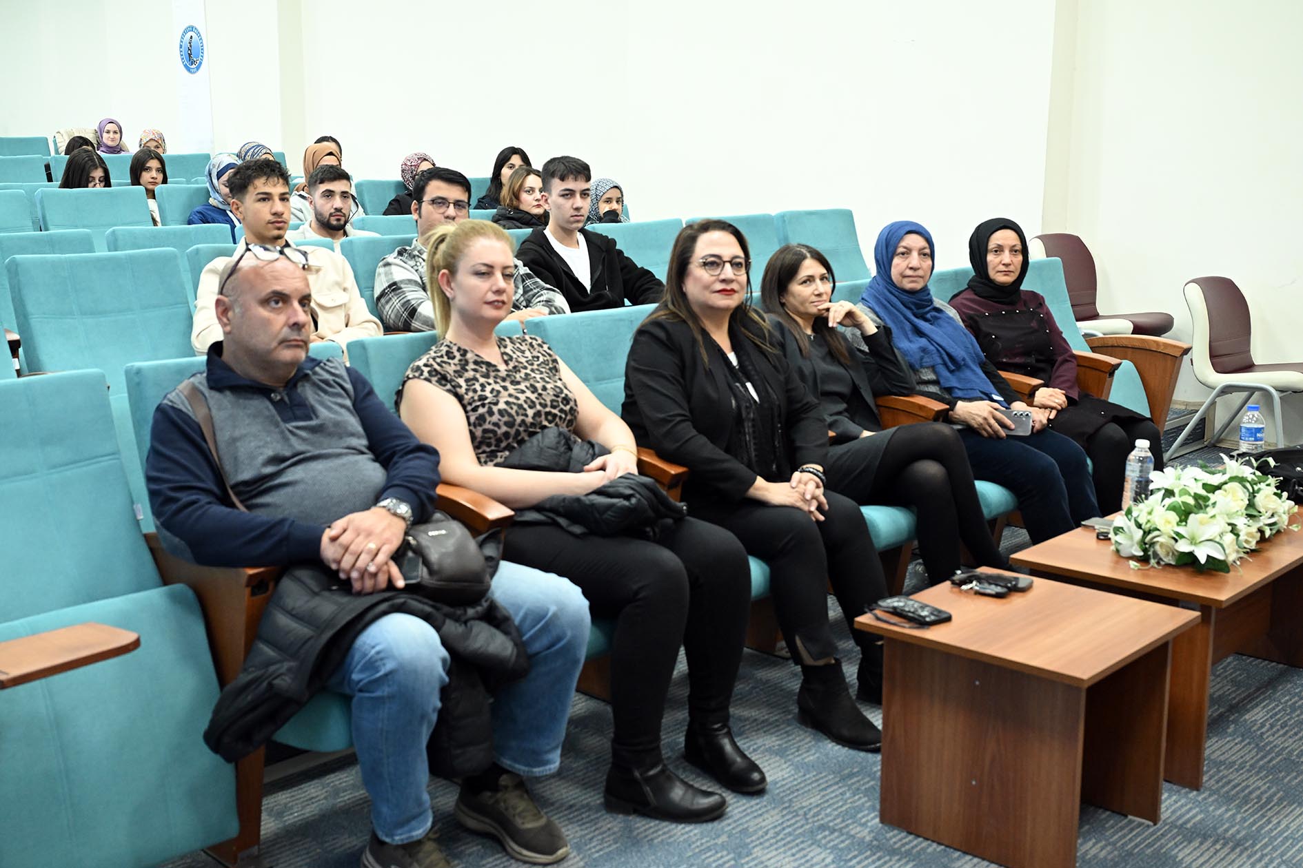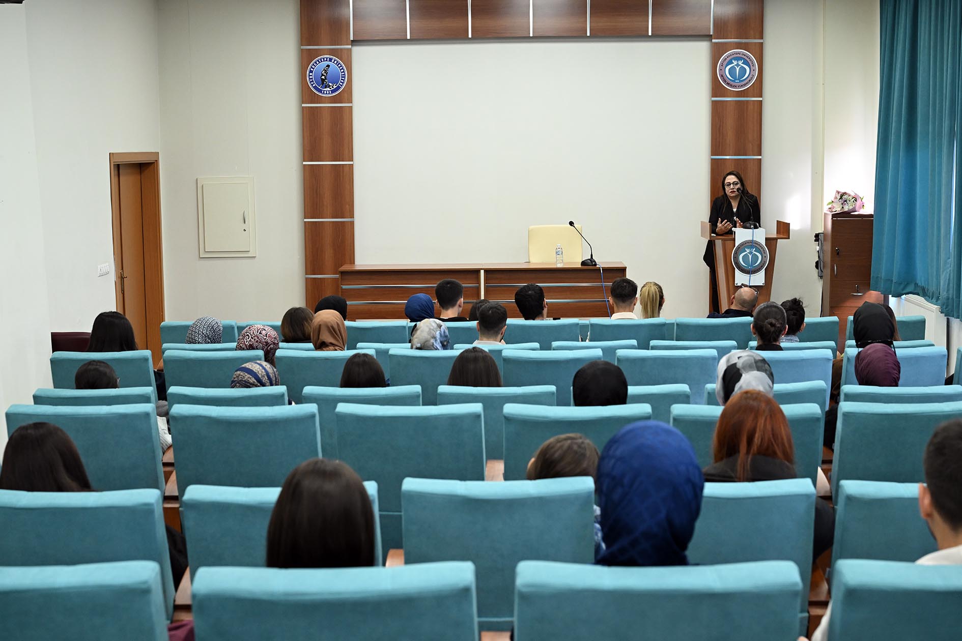 Dr. Alev Türe yaptığı konuşmada sağlık sektörünün, işletmelerin yoğun olduğu bir alan olduğunu belirtti. Hayat başarısının mesleki başarının önüne geçtiğini vurgulayan Türe, öğrencilerin hangi bölümde okuduklarının tek başına belirleyici olmadığını ifade etti. İnsan ilişkileri, iletişim becerileri, işe yönelik heves ve çalışma isteğinin mesleki bilgi kadar önemli olduğuna dikkat çeken Türe, “Zekâ seviyesi ortalama olan bir birey, düzenli eğitim aldığında akranlarıyla benzer bir seviyeye ulaşabilir. Ancak bu seviyeyi ileri taşıyabilenler, süreçten gerçek anlamda kazanç sağlayan kişiler oluyor” dedi. Kadınların sosyal rollerinin daha fazla olduğuna da dikkat çeken Türe, bu durumun hayatın doğal akışından kaynaklandığını ifade etti. Türe, ileride anne, eş ve ev hanımı olarak farklı sorumlulukların bir arada yürütüleceğini hatırlatarak, “Her bir çalışanın farklı sorunları var ve bunlarla ilgilenmek zorundayız. Kişisel sorunlar da oluyor, iş yeriyle ilgili sorunlar da. Telefonunuz neredeyse hiç susmaz. Eve gittiğinizde de süreç devam eder. İdarecilik böyle bir iştir; 24 saat ulaşılabilir olmayı göze almanız ve görevinizin gereği olarak bunu sürdürebilmeniz gerekir” diye konuştu.