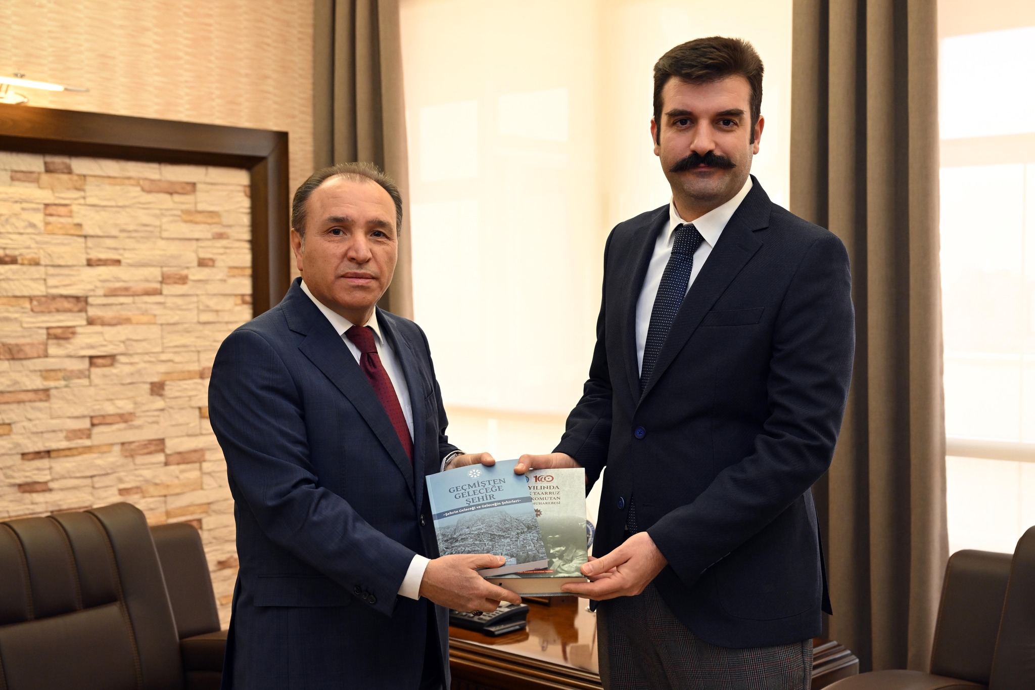 Rektör Prof. Dr. Karakaş, Kaymakam Yosunkaya’ya AKÜ yayını olan ve dört ciltten oluşan “Yüzüncü Yılında Büyük Taarruz ve Başkomutan Meydan Muharebesi” ile “Şehir Kültürü Kültürlü Şehir Bilgi Şöleni”nde sunulan bildirilerin bir araya getirilmesiyle hazırlanan “Geçmişten Geleceğe Şehir” adlı kitapları hediye etti.