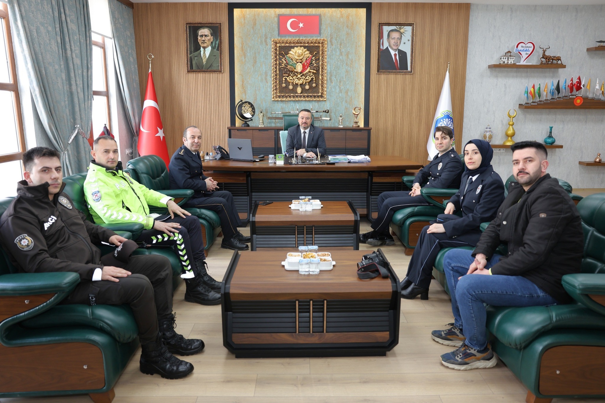 Arslan'dan Kaya'ya Ziyaret10 Nisan Polis Teşkilatının Kuruluşunun 181. Yıl dönümü dolayısıyla Sandıklı İlçe Emniyet Müdürü Bülent Ermiş ve beraberindeki heyet, Sandıklı Belediye Başkanı Adnan Öztaş’ı makamında ziyaret etti.