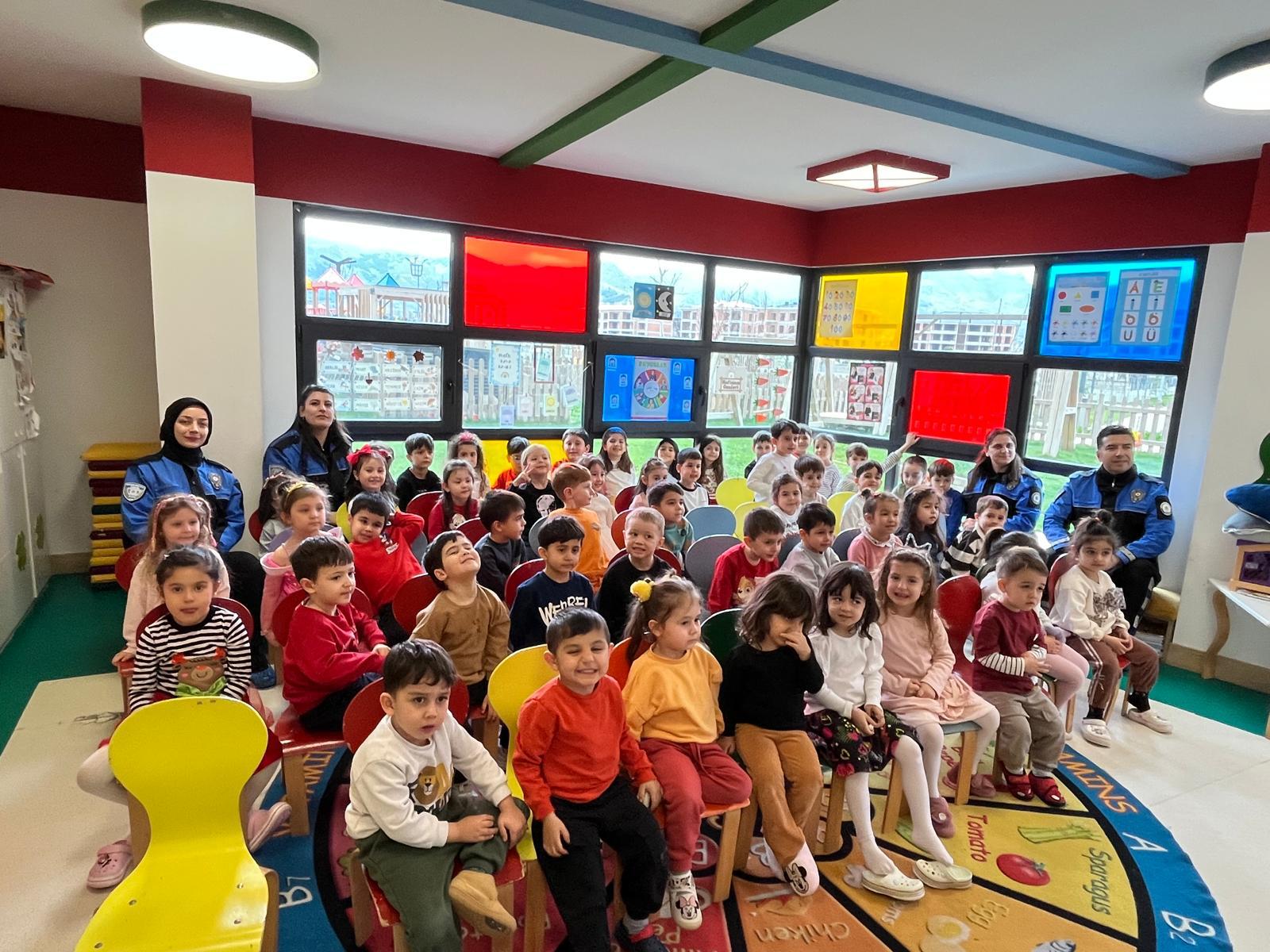 Emniyet Müdürlüğü görevlilerince, Türk Polis Teşkilatının 181. Kuruluş Yıldönümü dolayısıyla ilimiz Amerikan Kids Anaokulu ve Vilayetler Hizmet Birliği Anaokulu öğrencilerine yönelik;