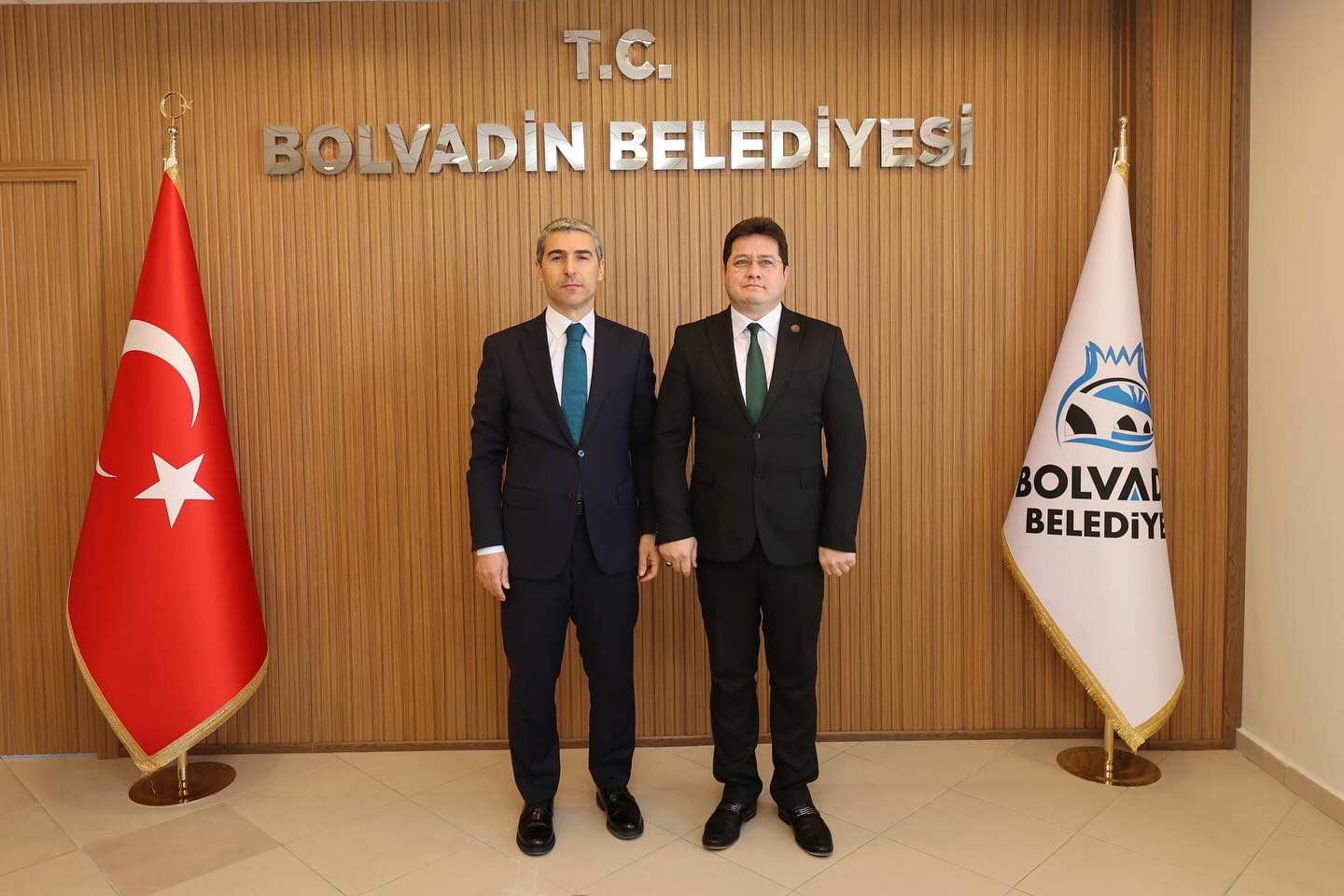 Bolvadin Belediye Başkanlığını ziyaret eden Vali Aktaş, Belediye Başkanı Derviş Aynacı’dan ilçede yürütülen çalışmalar konusunda bilgi aldı.