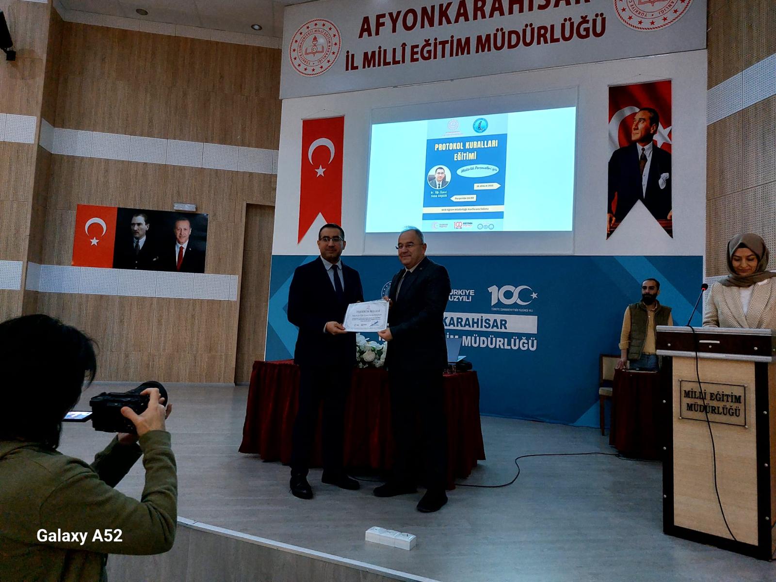 Müdürlük Ar-Ge Birimi tarafından düzenlenen eğitimde konuşan Müdür Yardımcısı Musa Dinçgez, protokol uygulamalarının kurumsal temsil ve nezaket kurallarıyla ilişkisine değinerek tüm personelin günlük çalışma hayatında ve kurumu temsil ettiği her ortamda önemli katkılar sağlayacağına değindi.